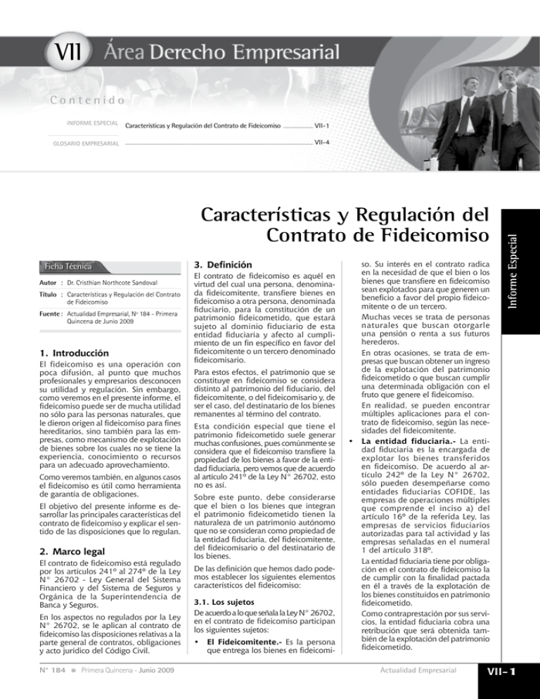 Presidente Ejecutivo de Central Fiduciaria, S.A. Temario. 01 - Origen del Fideicomiso. 02 - Definición y partes del Fideicomiso. 03 - Objeto y características del Fideicomiso. 04 - Transferencia de bienes y tipos al Fideicomiso. 05 - Los bienes aportados como patrimonio independiente. 06 - Tipos de fideicomisos.
