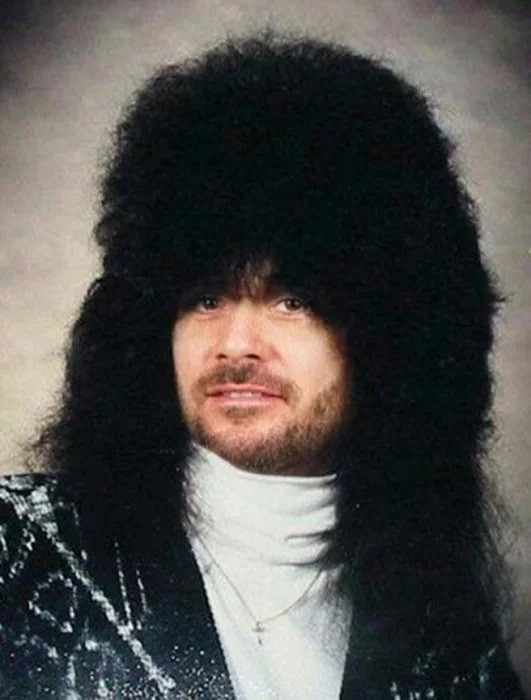 Los 80 fueron un gran año para los peinados masculinos. Mullets, rizos Jheri, pelo grande, mohawks, pelo de colores brillantes, y el pelo de punta eran populares durante los años 80. La gente era más experimental y no rehuía los peinados poco convencionales o distintivos.