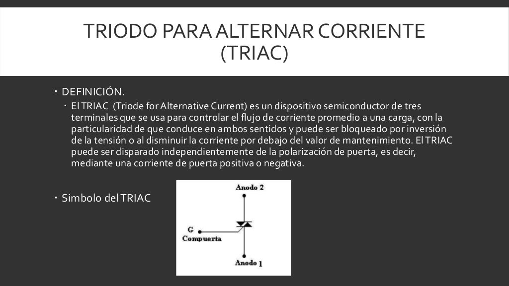 TRIAC. Esta es una guía completa que puedo ofrecerles acerca de este dispositivo llamado TRIAC, un componente de grandes prestaciones en el mundo de la electrónica de potencia e industrial. Los TRIACS son parecidos a los SCR, solo que los primeros pueden conducir corriente en cualquier dirección. Ambos dispositivos mencionados hacen parte de.