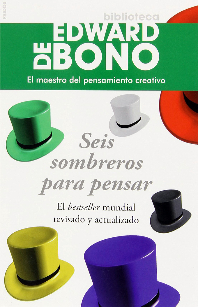 Books. Seis sombreros para pensar. Edward De Bono. Vergara, 1988 - Problem solving - 222 pages. CONTENIDO: "Actuar como si". Si actúas como un pensador, te convertidas en uno de ellos - Intención y desempeño - La melancolía y otros fluidos - Seis sombreros, seis colores - El sombrero blanco. Hechos y cifras - El sombrero rojo.