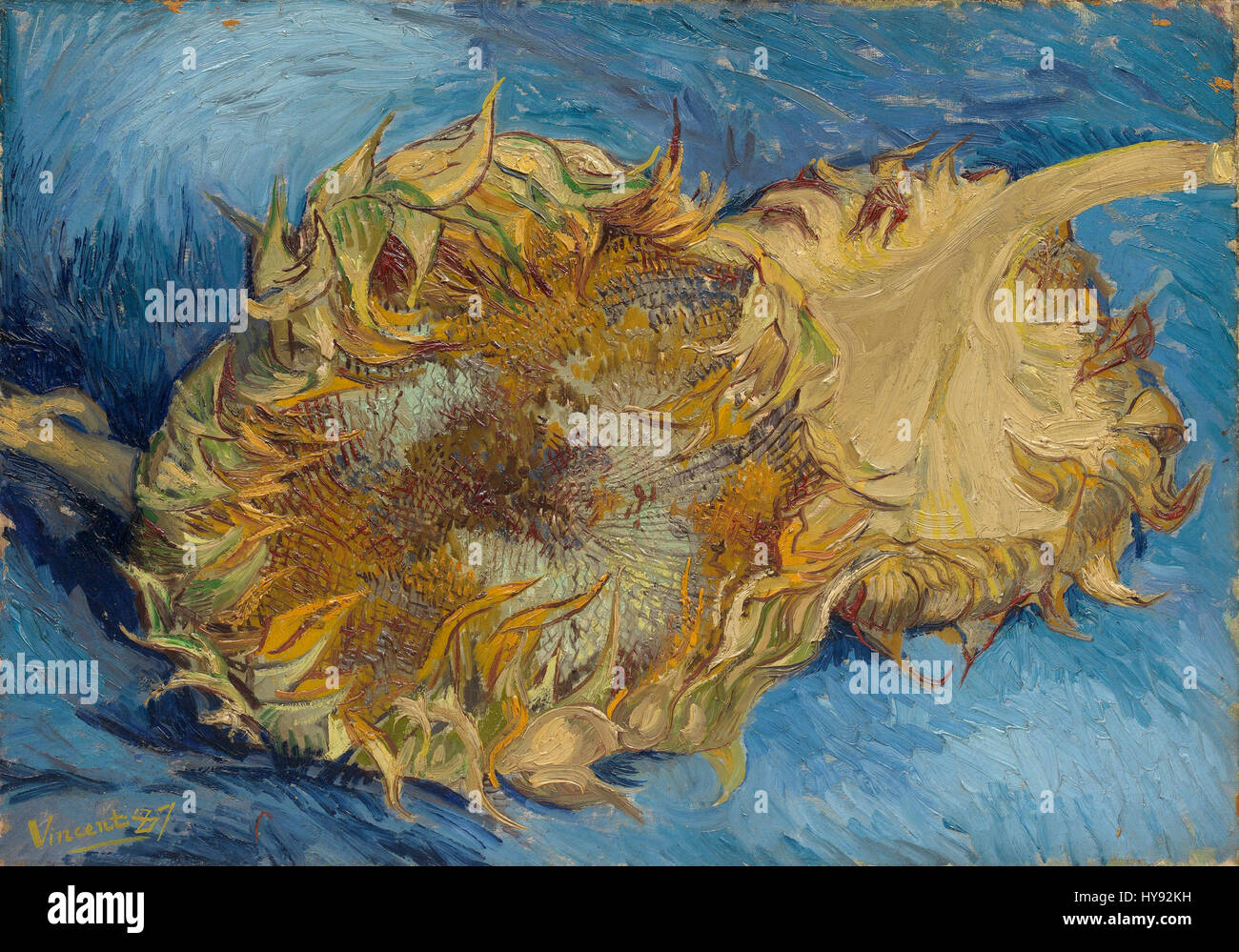 Girasoles. Van Gogh pintó cuatro bodegones de girasoles en París a fines del verano de 1887. Hay un boceto al óleo para esta imagen que se encuentra en el Museo Van Gogh de Ámsterdam, así como otra pintura de dos girasoles también firmada y fechada en 1887 en Kunstmuseum Bern, y un lienzo más grande que muestra cuatro cabezas de girasol.