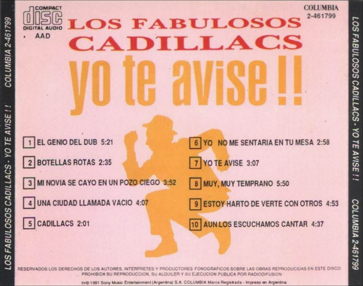 Explore the tracklist, credits, statistics, and more for Yo Te Avise!! by Los Fabulosos Cadillacs. Compare versions and buy on Discogs. Everything Releases Artists Labels. Advanced Search. Main Menu. Explore. Discover; Explore All; Trending Releases;. Los fabulosos cadilacs Yo te avise. 3:00; Lists Add to List.