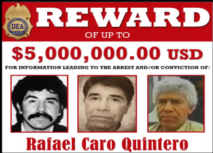 Como uno de los personajes más destacados del narcotráfico en México en los 80, Caro Quintero ocupaba el primer lugar de la lista de más buscados por el gobierno de EE.UU.