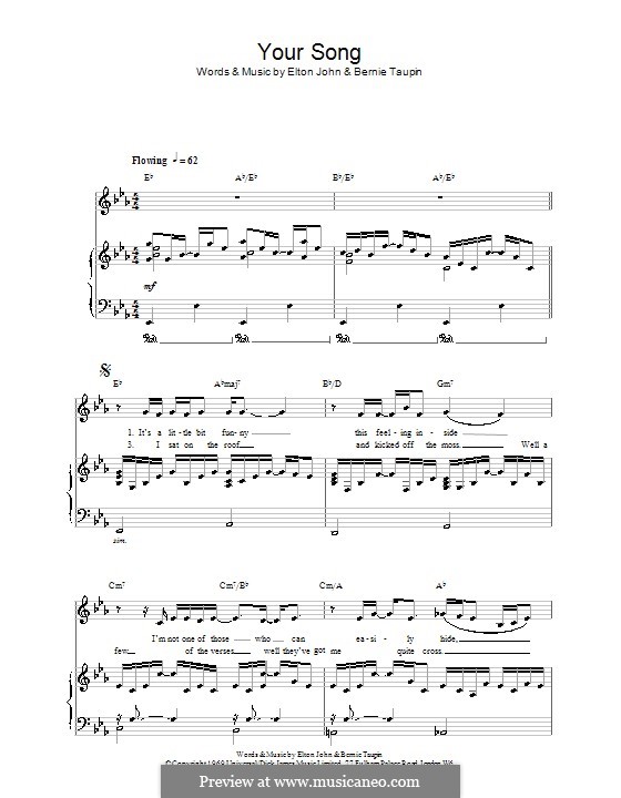 lead sheets for Your Song by Elton John Includes complete lyrics in Eb Major (transposable). SKU: MN0095311.. Piano Rock. The Song Details Tab gives you detailed information about this song, Your Song. Composers: Elton John. Bernie Taupin. Lyricists: Elton John. Bernie Taupin. Date: 1969.