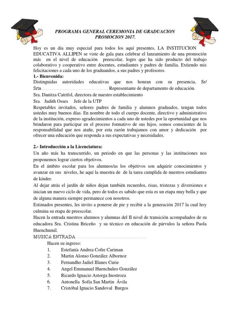 Programa General Ceremonia de Graduacion Promocion 2017 Cristina Jardín de infancia