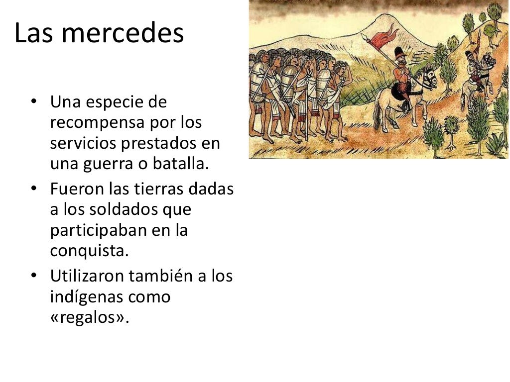Última edición el 23 de octubre de 2020 . Las mercedes reales, el tributo y las encomiendas formaban parte del sistema económico instaurado en Nueva España luego de la Conquista española. En 1521 la caída de Tenochtitlan a manos de Hernán Cortés marcó el final del Imperio azteca. Sin embargo, fuera del valle de México, la presencia.