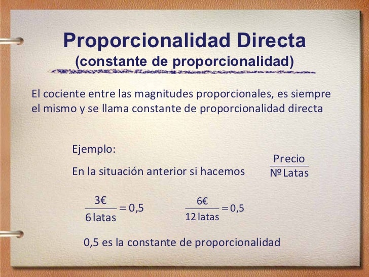 Introducción a las relaciones proporcionales. Las relaciones proporcionales son relaciones entre dos variables donde sus razones son equivalentes. Otra forma de pensar en ellas es que, en una relación proporcional, una variable siempre es un valor constante por la otra. Esa constante se conoce como la "constante de proporcionalidad".
