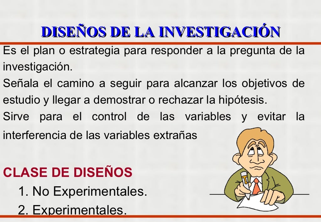 Un diseño de investigación es el conjunto de métodos y procedimientos utilizados para recopilar y analizar medidas de las variables especificadas en la investigación del problema. El diseño de un estudio define el tipo de estudio (descriptivo, correlacional, semiexperimental, experimental, de revisión, metaanalítico) y subtipo (por ejemplo, estudio de caso descriptivo longitudinal.